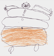 Adorno, der dicke Mann, der fast nicht mehr in seine Hose passt; gezeichnet von Julian.