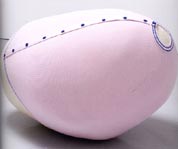 Ein riesiger Pullover um eine ‚Kartoffelform’. Die Skulptur heißt ‚Mind Bubble’ - Gedankenblase.