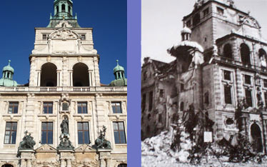 Im 2. Weltkrieg, also um 1940, wurde das Bayerische Nationalmuseum sehr stark zerstört und bis heute wird es immer noch repariert. Insbesondere der Westteil wurde von den Bomben der Alliierten zerstört, aber auch die Westseite des Mittelbaus.
