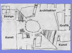 Lageplan der Pinakothek der Moderne, gezeichnet von Marvin.