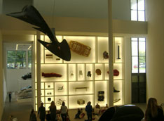 In der Design - Abteilung gibt es einen Setzkasten in dem Dinge drinnen hängen. Hier gibt es auch alte und neue Autos und Computer.