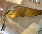 In der Ausstellung hängen große goldene Flügel an der Decke. Woher die wohl kommen?