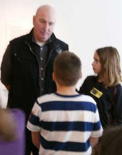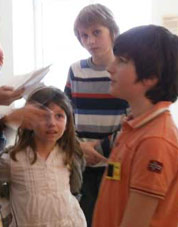 Danach erklärt Herr Derling wie versprochen den Münchner Kunstdetektiven vor dem Wappen des Münchner Kindls dessen Entstehungsgeschichte.