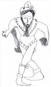 Der 'Zauberer'; einer der Moriskentänzer, gezeichnet von Verena.