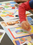 Im Werkraum des Museums entstanden in Freundschaftsteams oder auch alleine gemalte und collagierte Bilder.