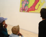 Bei diesen Terminen stand die Bildbetrachtung bei der spielerischen Erkundungssuche durch die Ausstellung im Mittelpunkt. In der letzten halben Stunde entwarfen wir direkt vor den Originalen in der Ausstellung unsere eigenen farbigen Bilderwelten.