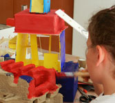 An fünf Workshoptagen in den Sommerferien 2011 erkundeten die Kinder die Ausstellung 'Mondrian und de Stijl' im Kunstbau des Lenbachhaus, um anschließend ihr eigenes Kunstatelier bei E.ON Energie, wenige Schritte vom Kunstbau entfernt zu eröffnen. An jedem Workshoptag stand ein anderer künstlerischer Schwerpunkt der Ausstellung im Mittelpunkt.
